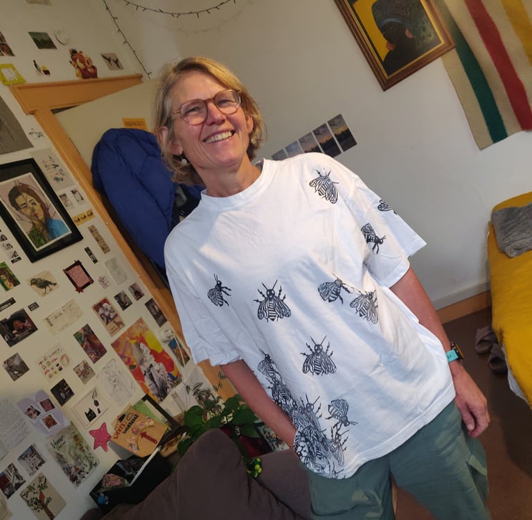 Een van mijn hobby’s is het maken van linosnedes, In combinatie met het upcyclen van kleding. Door mijn linosnedes op kleding te drukken, combineer ik beide passies. Zo is ‘Liekeable’ ontstaan – een reeks unieke items die als mijn eigen mini-kledinglijn aanvoelen.