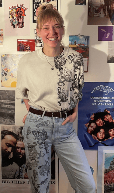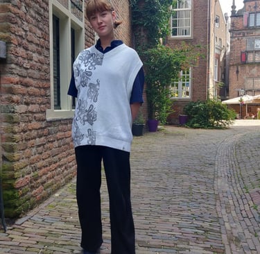 Een van mijn hobby’s is het maken van linosnedes, In combinatie met het upcyclen van kleding. Door mijn linosnedes op kleding te drukken, combineer ik beide passies. Zo is ‘Liekeable’ ontstaan – een reeks unieke items die als mijn eigen mini-kledinglijn aanvoelen.
